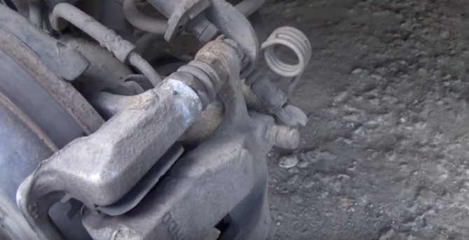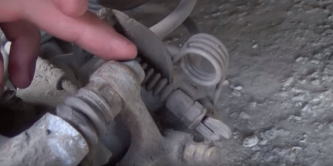 - Колодки теперь не зажаты и снимаются с минимальным усилием. Параллельно следует извлечь направляющие пальцы, осмотреть на предмет износа, при необходимости заменить с использованием соответствующей смазки.