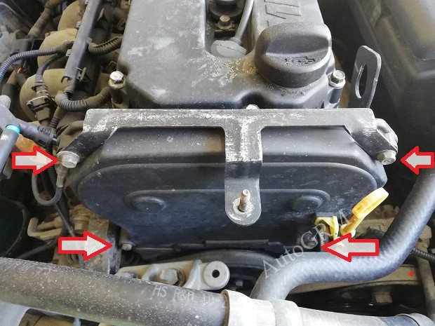 Итак, достаем наши рабочие инструменты, достаем купленный заранее комплект переноски и начинаем процедуру замены ремня. Откройте капот и снимите крышку с механизма газораспределения. Для этого нужно открутить несколько болтов.